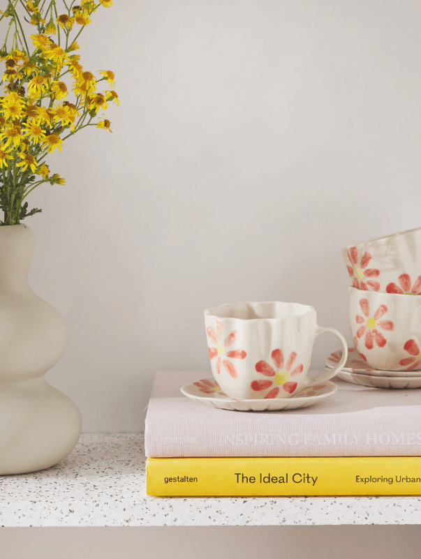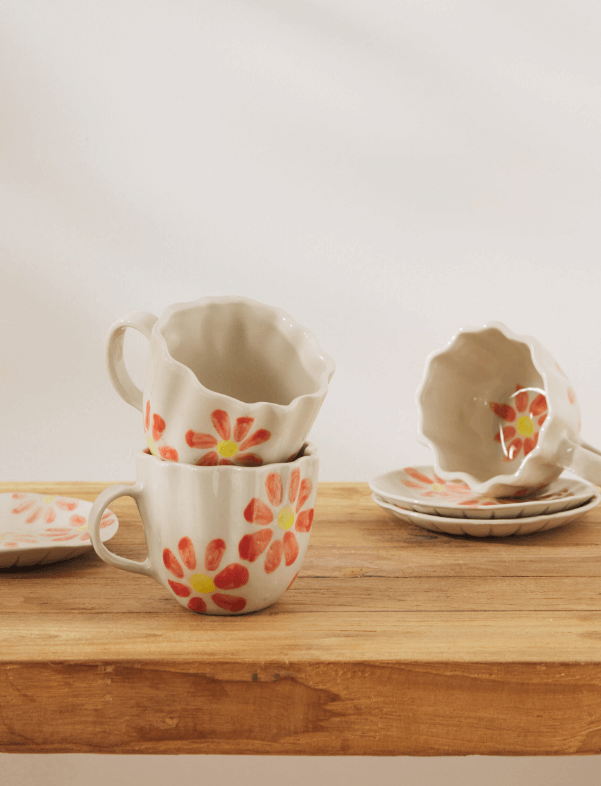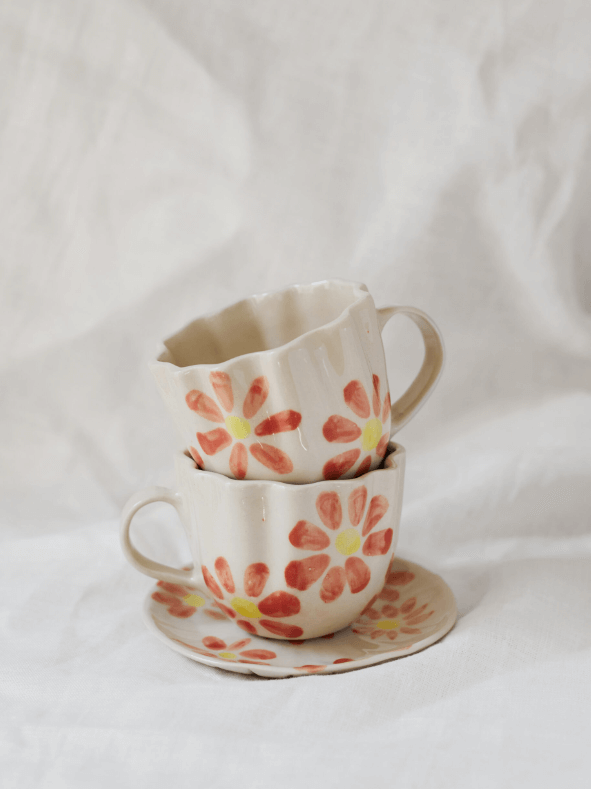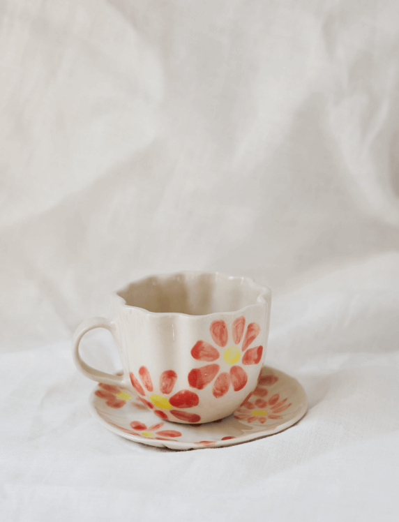 Sielsko, anielsko i kwiatowo. Filiżanka z podstawką idealna na prezent dla bliskiej osoby lub… właśnie dla Ciebie. Obdaruj się delikatnością, a doświadczysz przyjemności, jaką jest otulenie się smakiem, aromatem i ciepłem. Zainspiruj się naszym designem i dodaj do herbaty słodkie i delikatne płatki róż, chryzantemy o miodowym aromacie lub nadające wyrazistości płatki hibiskusa. Wybierz się w kwiatową podróż – 220 ml przyjemności tylko dla Ciebie.