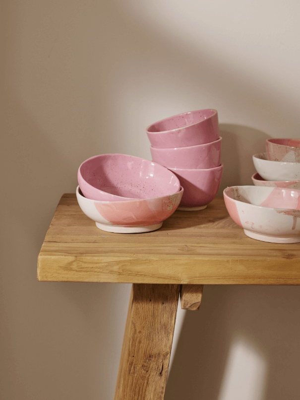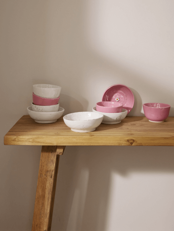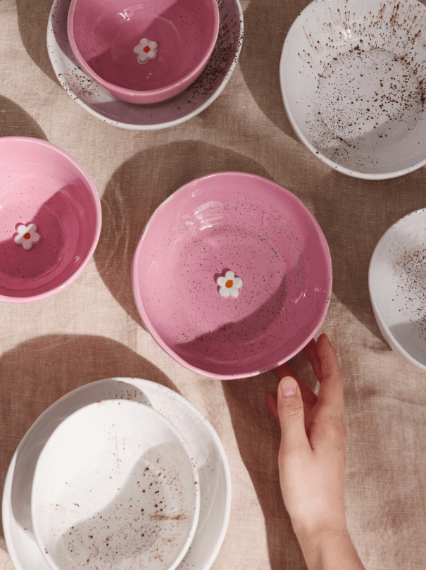 Białe plamki, które występują na filiżankach i talerzykach to zamierzony efekt spływającego szkliwa. Każdy zestaw może posiadać plamki w różnych miejscach. Jeśli przed zakupem, chcesz zobaczyć obecnie dostępne zestawy – napisz!